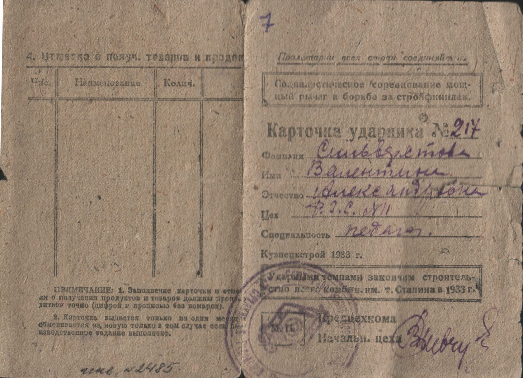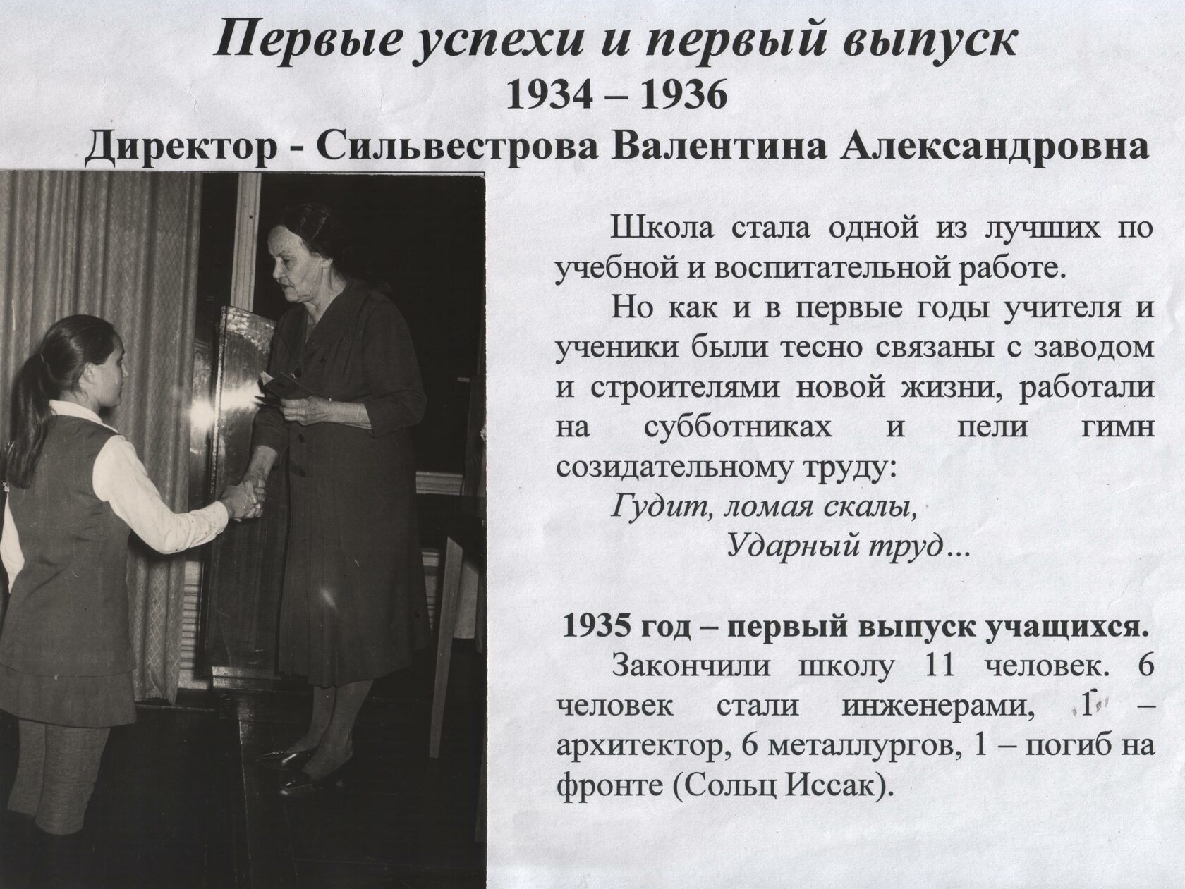 Валентина Александровна так вспоминает период работы в ФЗС №11. «Я была членом партии, поэтому меня назначили директором 11-й ФЗС (фабрично-заводской семилетки). Здание барачного типа для этой школы только что построили, находилось оно на Нижней колонии, рядом с болотом, так что воду мы брали прямо с крыльца.