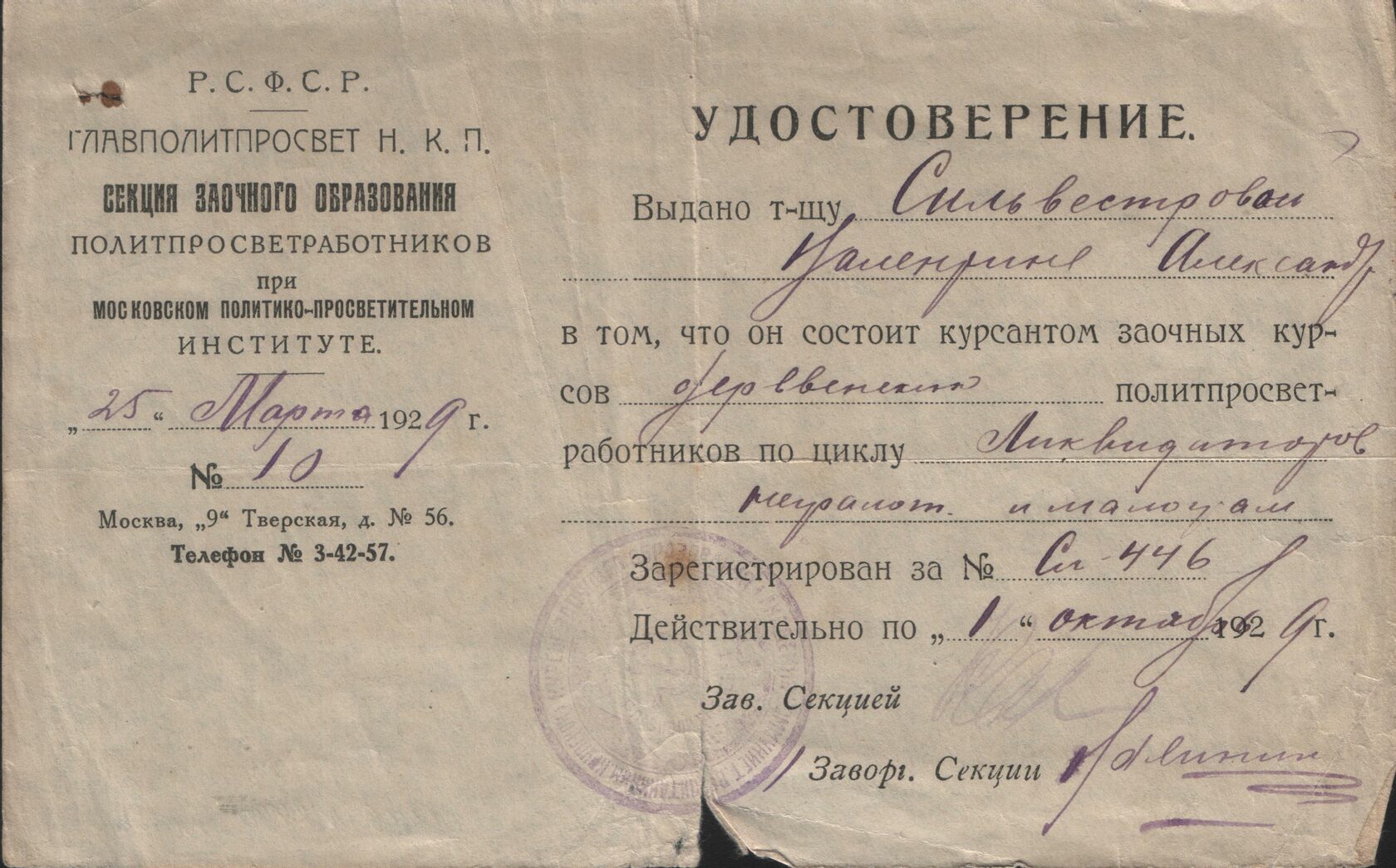 В школе работали хоровой, физкультурный, планерный кружки. В гортеатре рапортовали о своих делах. Кружковцы запустили планер, который с галерки долетел до сцены. Руководил планерным кружком Сеня Кузнецов. Потом он стал летчиком, погиб на фронте.